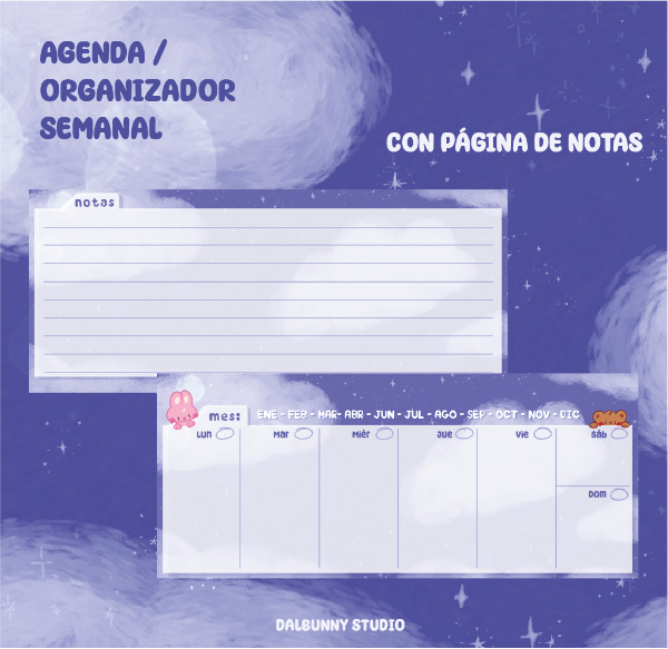 Son 30 páginas con organizador semanal, cada una con una página de notas